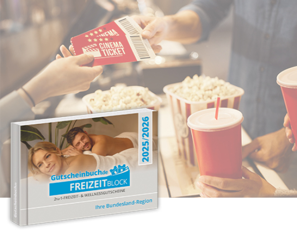 Der Gutscheinbuch.de Freizeitblock ist ein Freizeit- und Erlebnisführer für Top-Freizeitziele in Ihrem Bundesland. Egal ob Freizeitpark, Kino oder Therme - sparen Sie einfach überall und genießen Sie Ihre Freizeit gemeinsam mit Freunden oder der ganzen Familie.