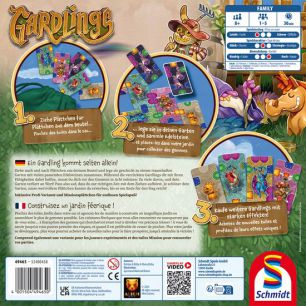 Ein Gardling kommt selten allein! Ziehe nach und nach Plättchen aus deinem Beutel und lege sie geschickt zu einem traumhaften Garten mit vielen passenden Edelsteinen zusammen. Während die verrückten Gardlings dir mit ihren Fähigkeiten dabei helfen, musst du dich vor den Gnomen in Acht nehmen: Zu viele davon, und dein Garten verliert an Wert! Pass also auf, dass du zur richtigen Zeit mit dem Ziehen aufhörst. Je schöner dein Garten, umso wertvollere Plättchen kannst du erwerben, bis es am Ende für den Sieg reicht! Inklusive Profi-Variante und Missionsplättchen für endlosen Spielspaß!